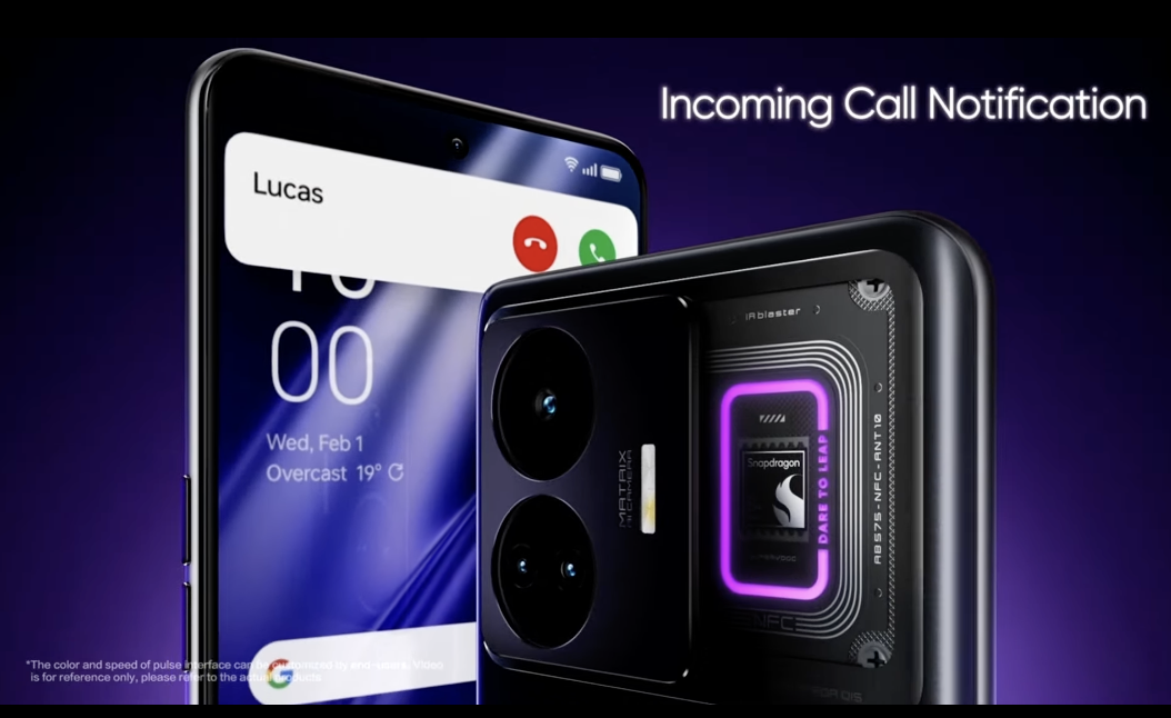 realme GT3 除了令人驚嘆的 240W SUPERVOOC 外,背蓋的相機模組旁邊有一個半透明窗口,透視設計能夠直接看到處理器晶片裝飾、NFC 天線和創新的 C 形 RGB 燈效。
