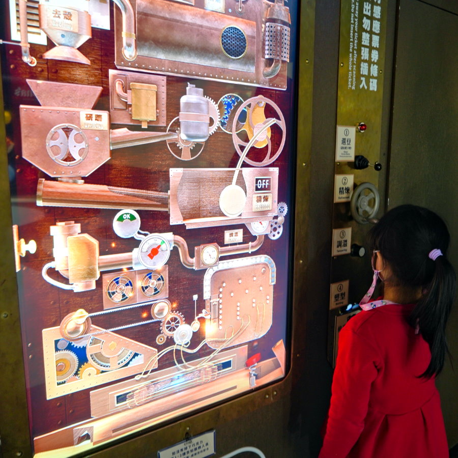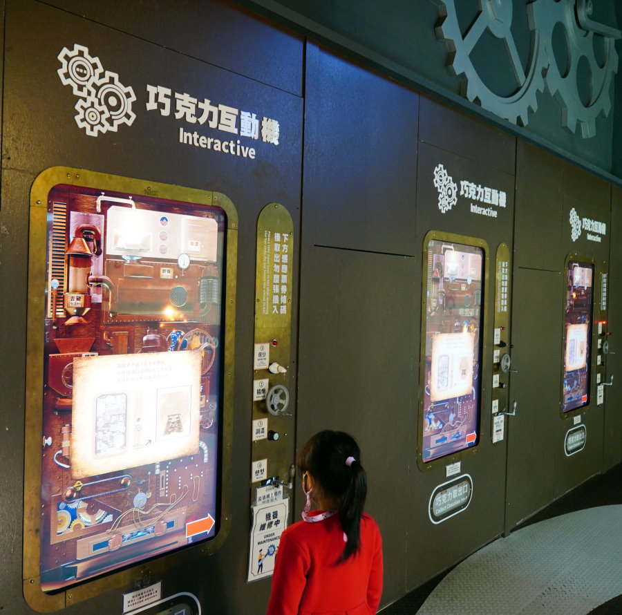 ▼這層樓最好玩的莫過於巧克力互動機,只要插入門票就可以玩囉~~每張門票可玩一次,千萬不要一開始就把門票丟了(笑)!