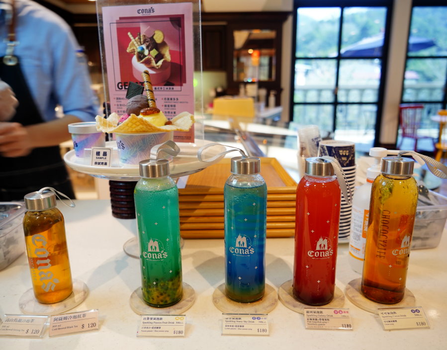 ▼另外還有冷泡茶、氣泡飲等飲品,看起來很夢幻,瓶子喝完還可以帶回家當水壺,整個很環保啊!