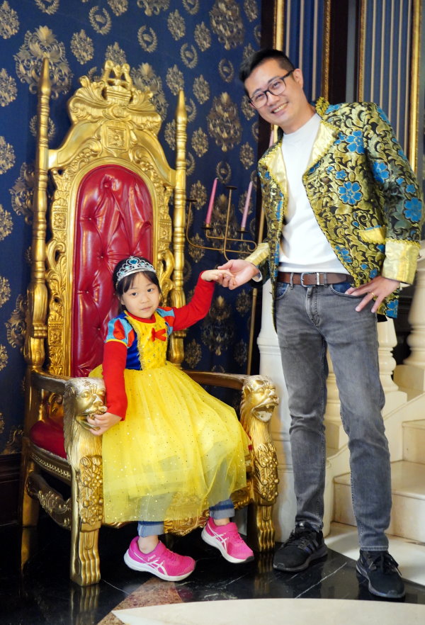 ▼一樓還有一個超大賣點,那就是免費變裝區,這裡有提供男女宮廷服飾,小朋友也有超可愛的公主裝可以換裝唷!在門口挑好衣服後,就可以進去更衣室換裝,一旁櫃子還有提供皇冠、帽子、魔法棒等道具,讓大家可以一秒變身公主、王子!