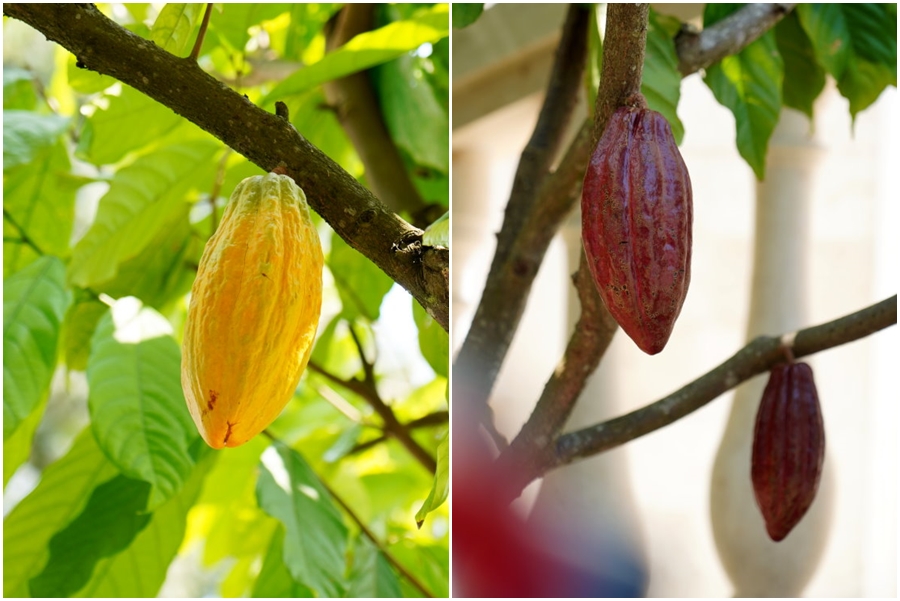 ▼外頭還可以看見幾顆可可樹,上頭有結實纍纍的可可果實,也就是製作巧克力的原料,剛好可以讓小朋友來個巧克力深度之旅!