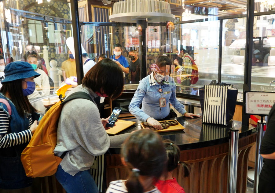 ▼巧克力秀結束後,現場也有發放免費調溫巧克力讓大家品嘗,只要排隊就能領取一顆!