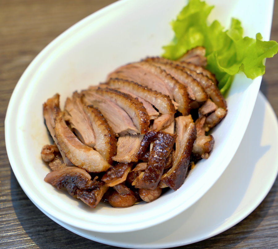 ▼外皮呈現迷人的琥珀紅色澤,輕薄酥脆,一口咬下還會有脆口的聲音,酥脆又保留油脂香氣,搭配鮮嫩多汁的肉質,單吃就非常銷魂,搭配胡椒鹽享用更是美味!值得一提的是就連冷掉享用外皮仍保有脆度,真的是推薦必點!