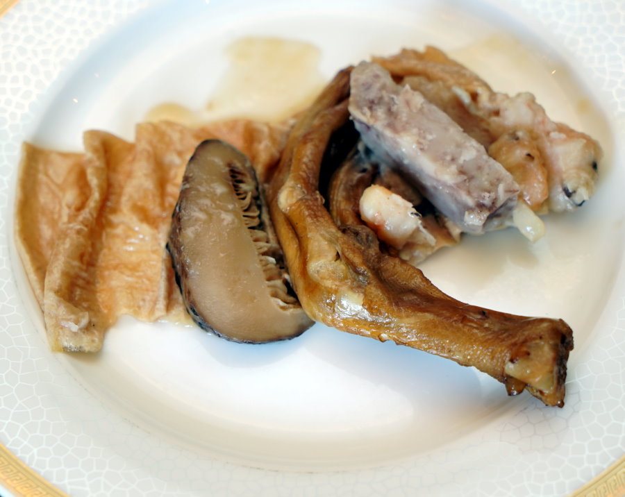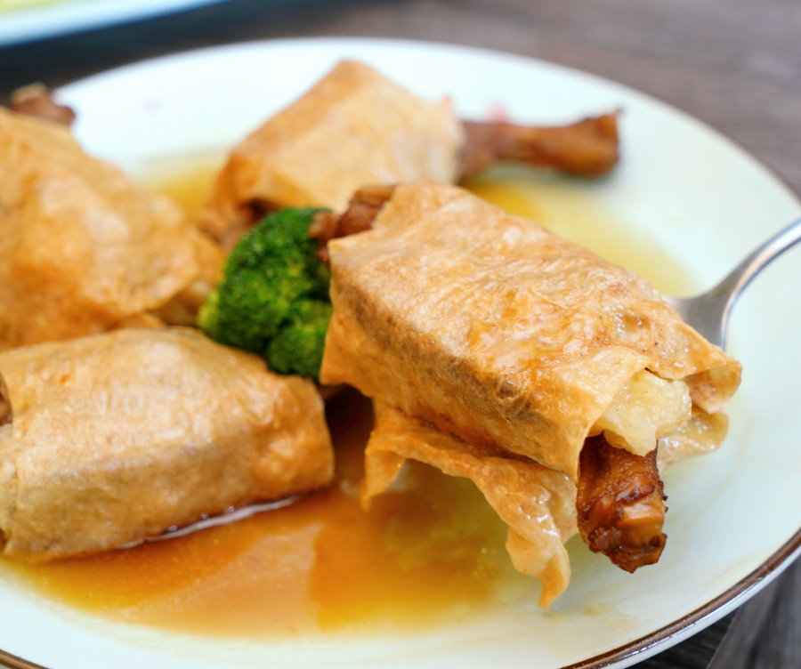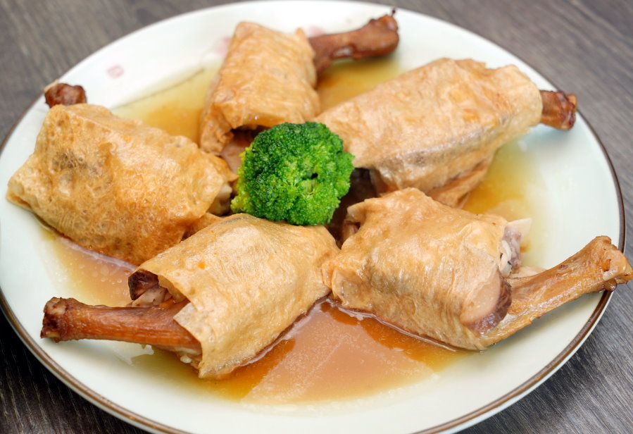 ▼採用腐皮包裹鴨腳、芋頭、冬菇、花膠等食材下去製成,冬菇肥厚、芋頭軟綿、花膠鮮Q柔嫩,搭配吸附醬汁的腐皮很夠味,吃起來口感多元豐富!