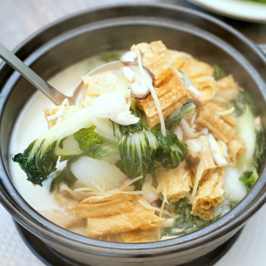 ▼腐竹魚湯浸鮮蔬,先熬出魚湯,再用蔬菜下去浸濡,有別於煮食的概念,讓食材慢慢吸附湯頭的精華!