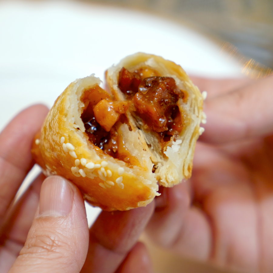 ▼餅皮層次多元又帶點微酥化口感,搭配鹹香微甜的內餡頗為合拍!