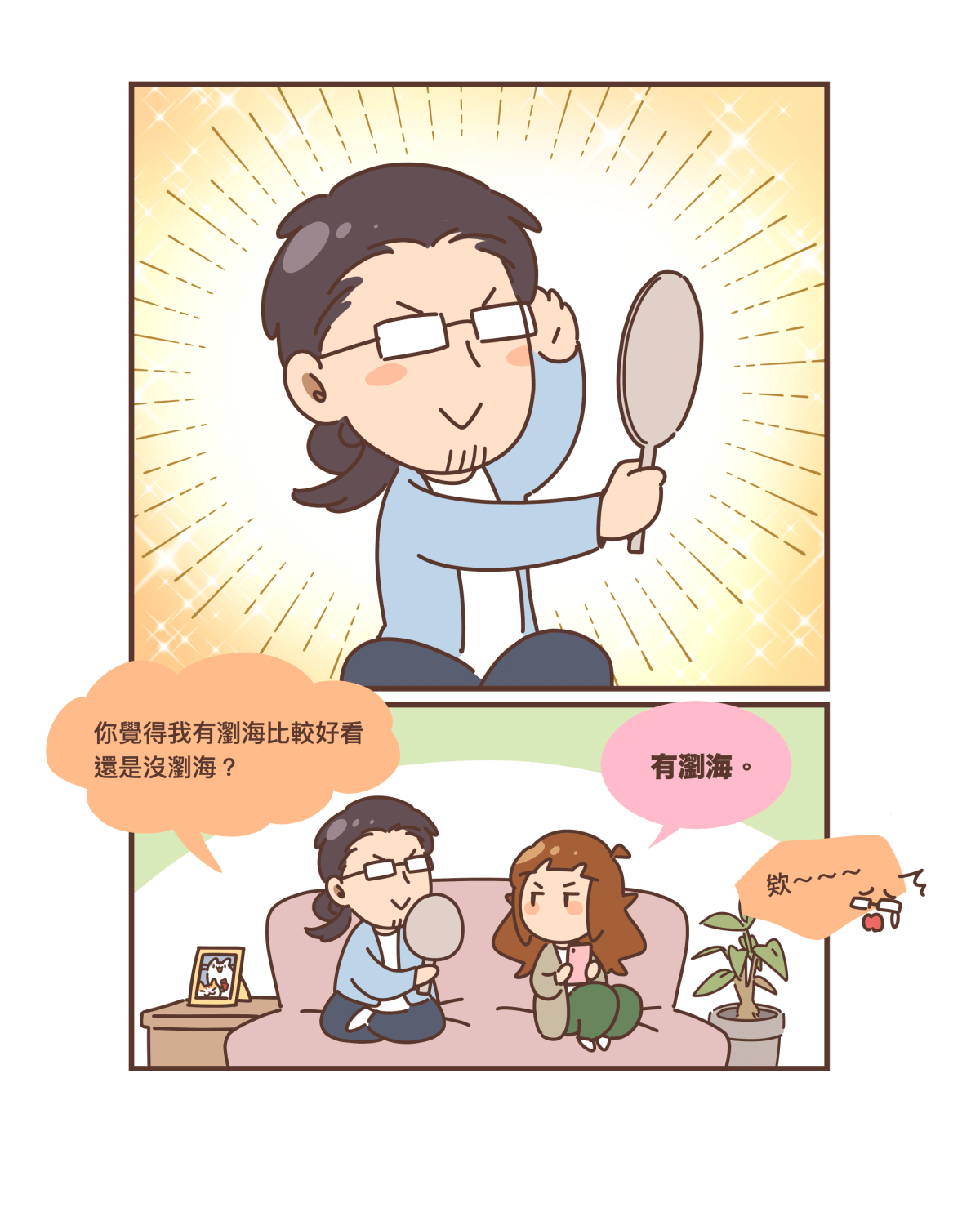 你覺得我有瀏海比較好看還是沒瀏海?有瀏海。欸~~~