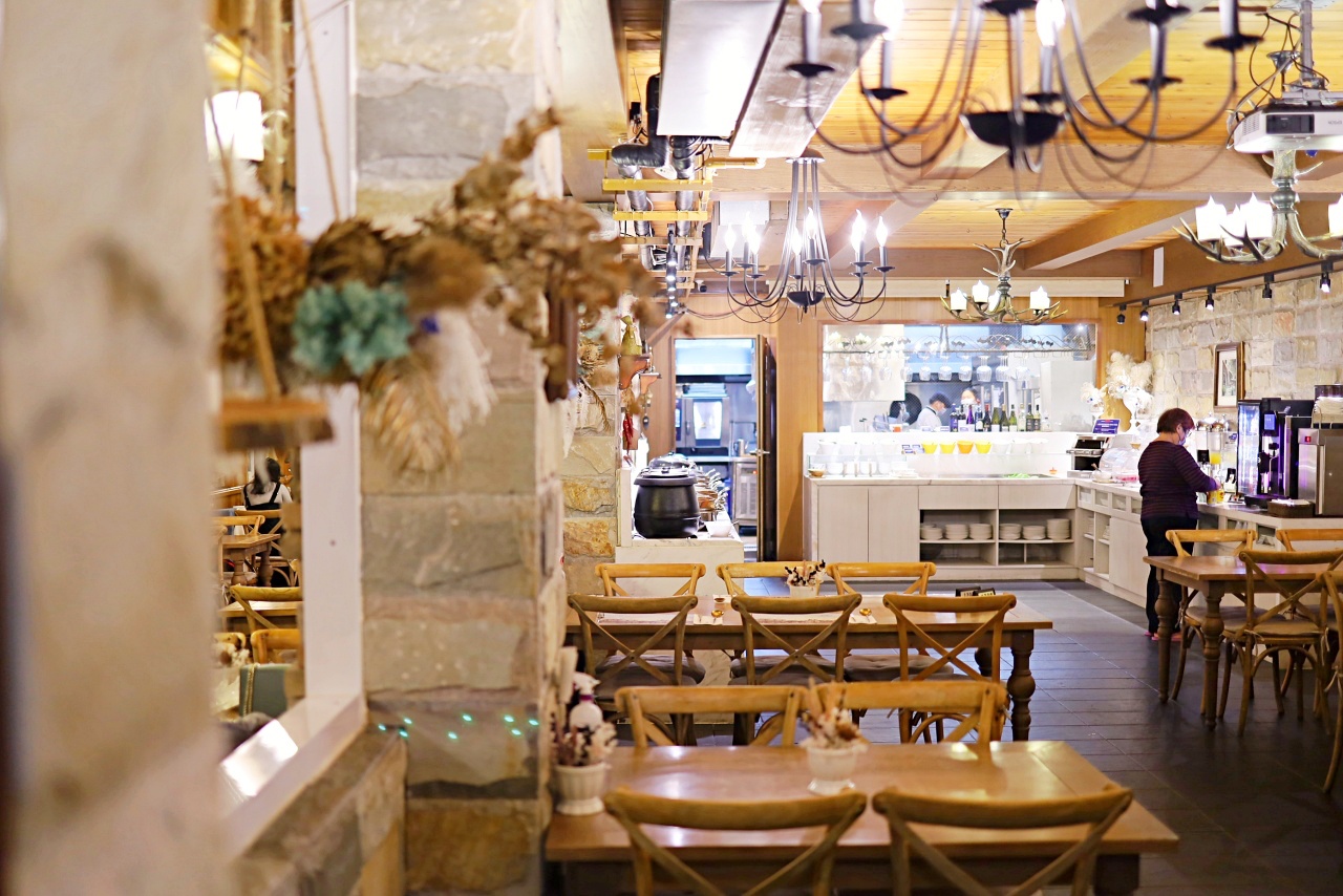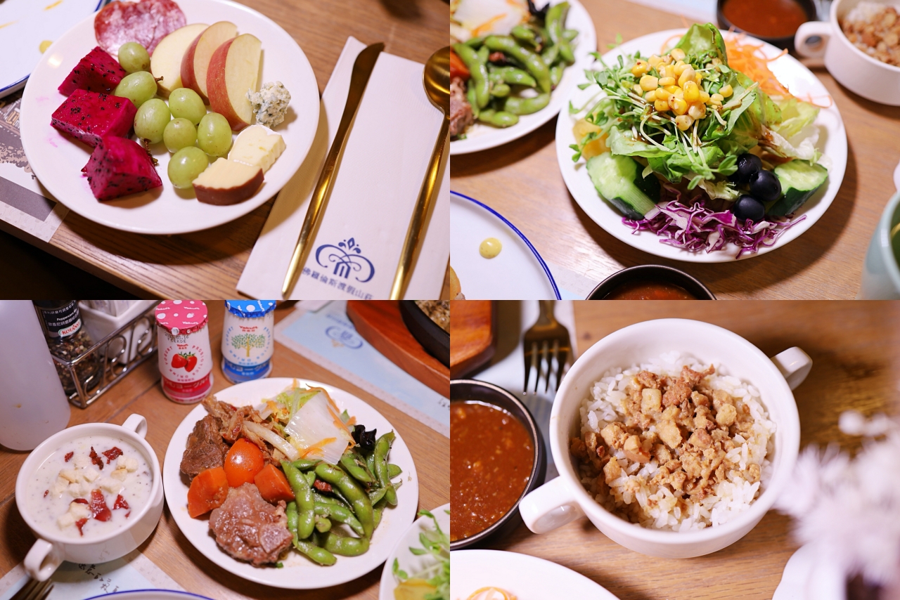 一樓餐廳提供早餐跟晚餐,晚餐主打義式料理,搭種類多樣的自助吧。以清境地區的住宿來說,【清境佛羅倫斯渡假山莊】的餐廳菜色是這區有水準的,光是自助吧的多樣選擇就讓人豎起大拇指,主餐有什錦海鮮、碳烤菲力牛排、嫩煎伊比利豬、烤春雞、印度科夫塔、羊肩排、火鍋(豬肉/牛肉/素食),讓人很難抉擇,都好想吃啊。