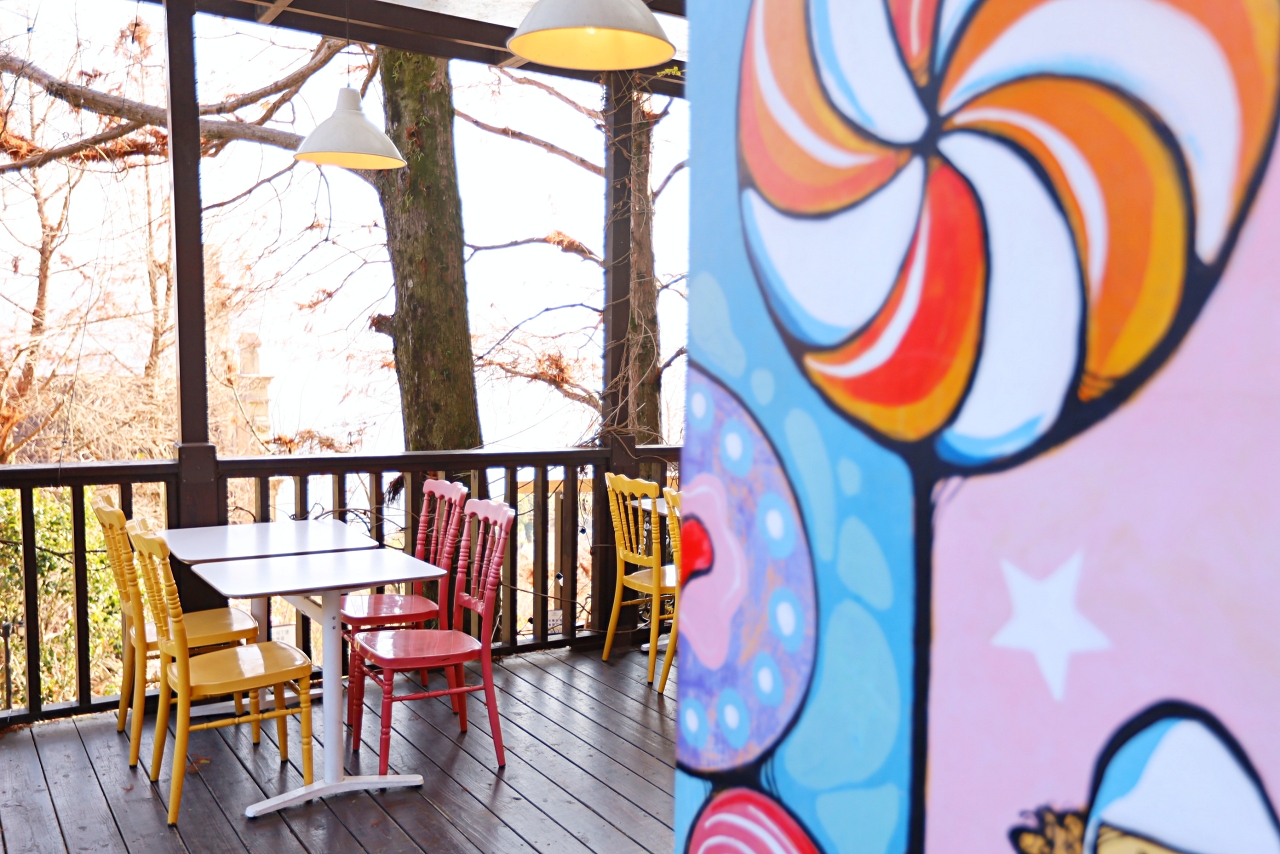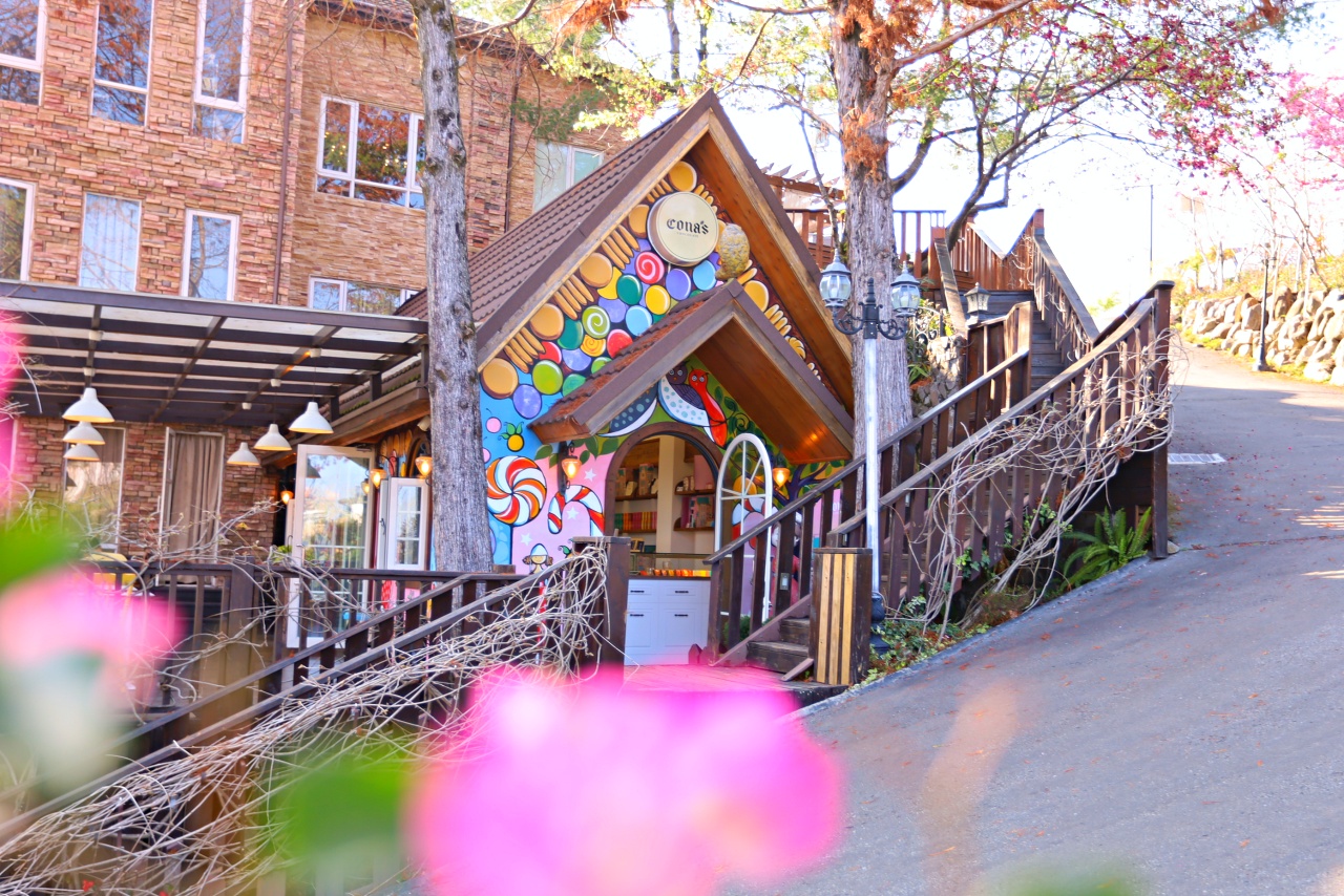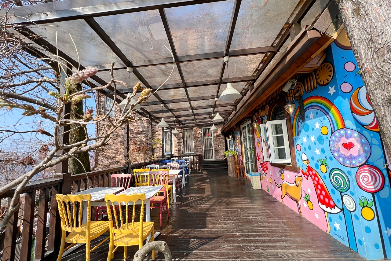 外牆彩繪塗鴉的設計,看起來好繽紛充滿歡樂,這棟小木屋像極了童話故事裡的糖果屋,不只小孩喜歡大人來到這裡也瞬間充滿童心。