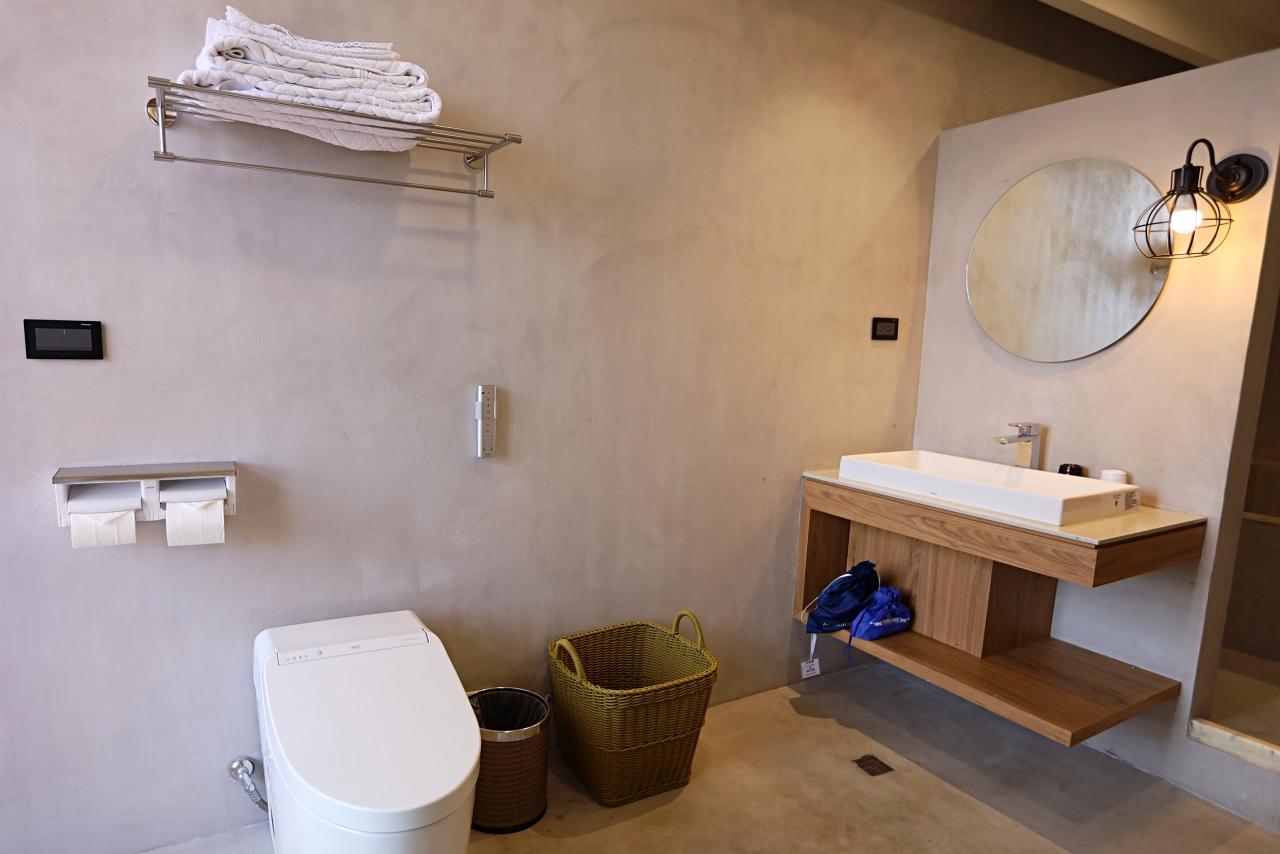 ▲浴室是搭配乾濕分離有大浴缸的設計,最喜歡的是使用歐萊德洗髮精跟沐浴乳,光是這點又要大大加分了!能感受到山莊主人在小細節的用心。晚上特地到大廳櫃檯購入泡澡精油,讓忙碌一天的身心可以泡個舒服的熱水澡。