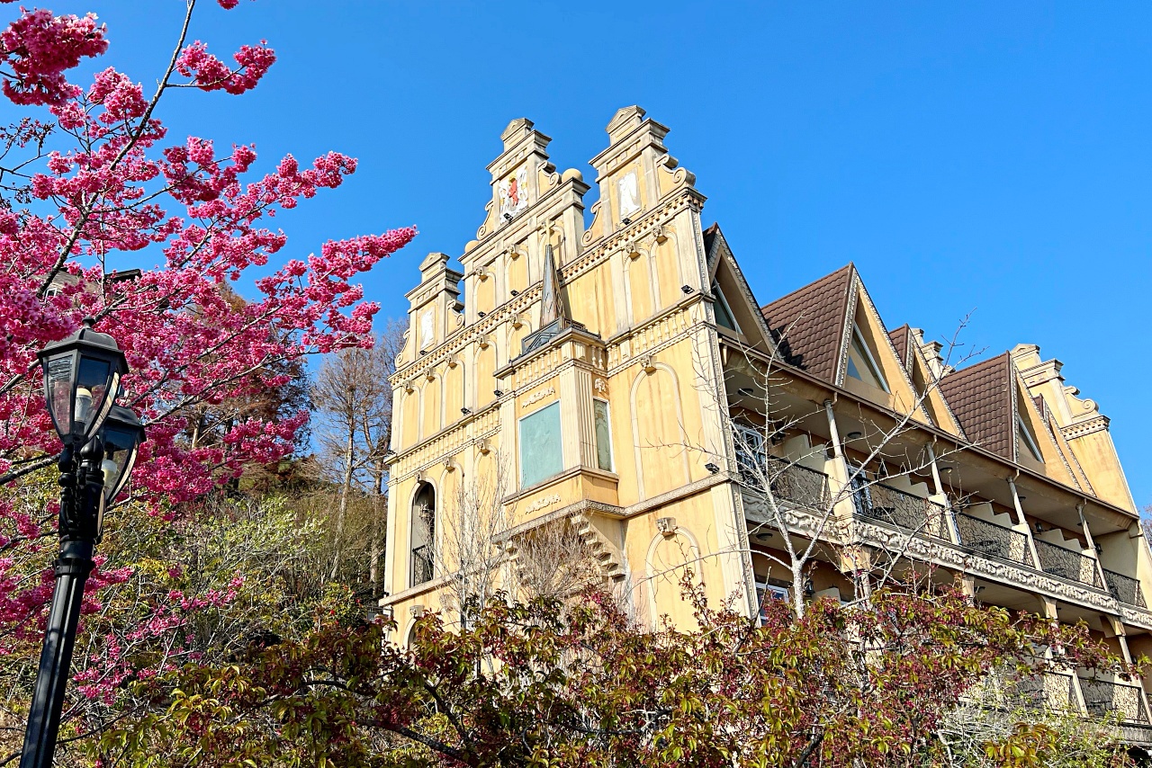 ▲沿著步道往下散步就可以到「君士坦丁堡」、「歐洲庭園館」,一月下旬到三月中下旬有機會看到山櫻跟粉櫻輪番登場。