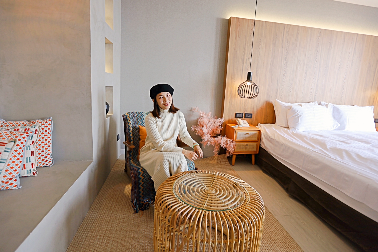 這次入住的「翡冷翠景觀雙人房1301」足足有13坪大空間,非常寬敞。通往陽台有大面落地窗讓陽光灑進屋裡,明亮舒適的空間,讓人感受特別舒服,我就想賴在房間耍廢哪都不去了。