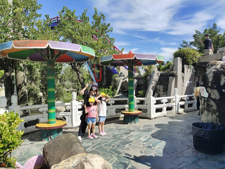 ▼群仙洞附近還有彩色蘑菇傘可以稍微遮陽一下,不然真的很熱~~大家記得要多補充水份喔!