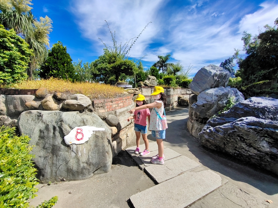 ▼接著我們又繼續闖關,雖然當天很熱,不過沿途看著多元的庭園景觀、地洞、石階步道,走起來沒這麼辛苦,反而覺得有趣!