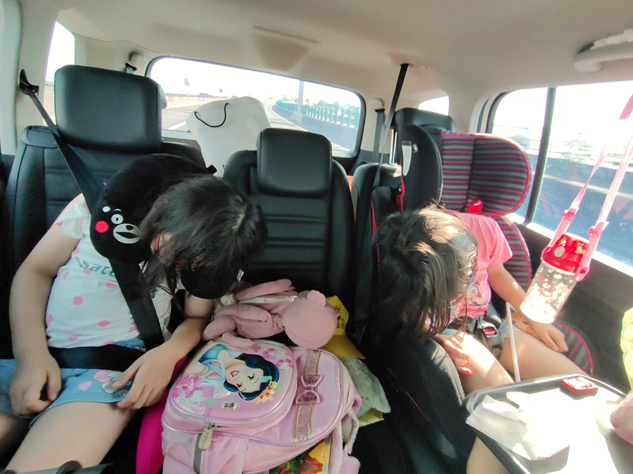 ▼上車沒多久果然小倆口就睡著了,可見放電放得有多徹底,哈!