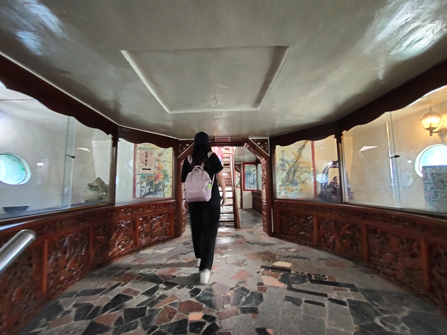 ▼九龍船裡頭也有一些藝術品裝飾,裡頭空間也不小,可惜外頭在整修,拍起來就沒這麼漂亮~~