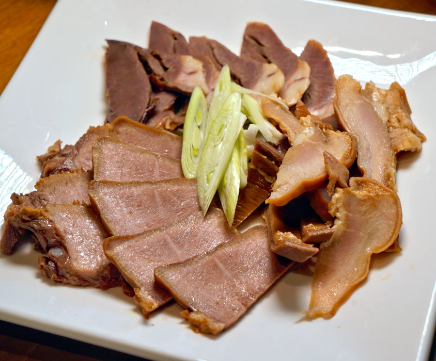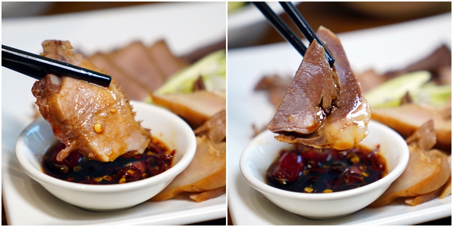 ▼酒滷三色盤,採用本地黑毛豬肉搭配酒、醬油下去滷製,三色盤也就是指豬心、豬肚、豬舌頭,可以單吃或是搭配辣椒醬油享用!