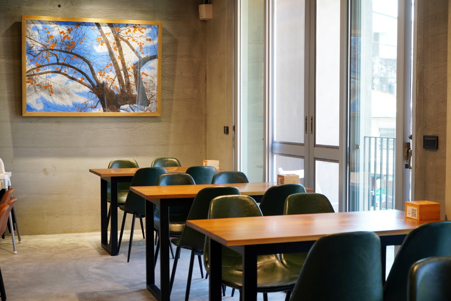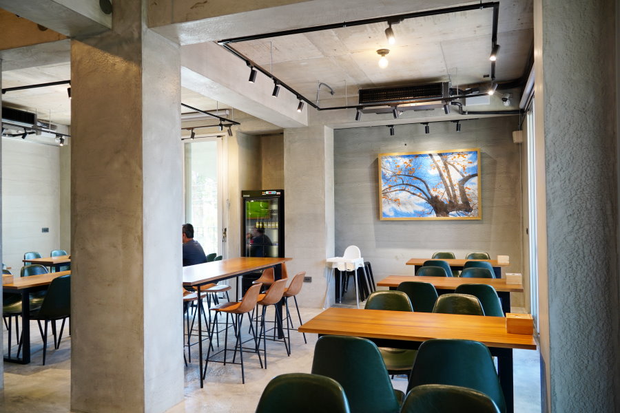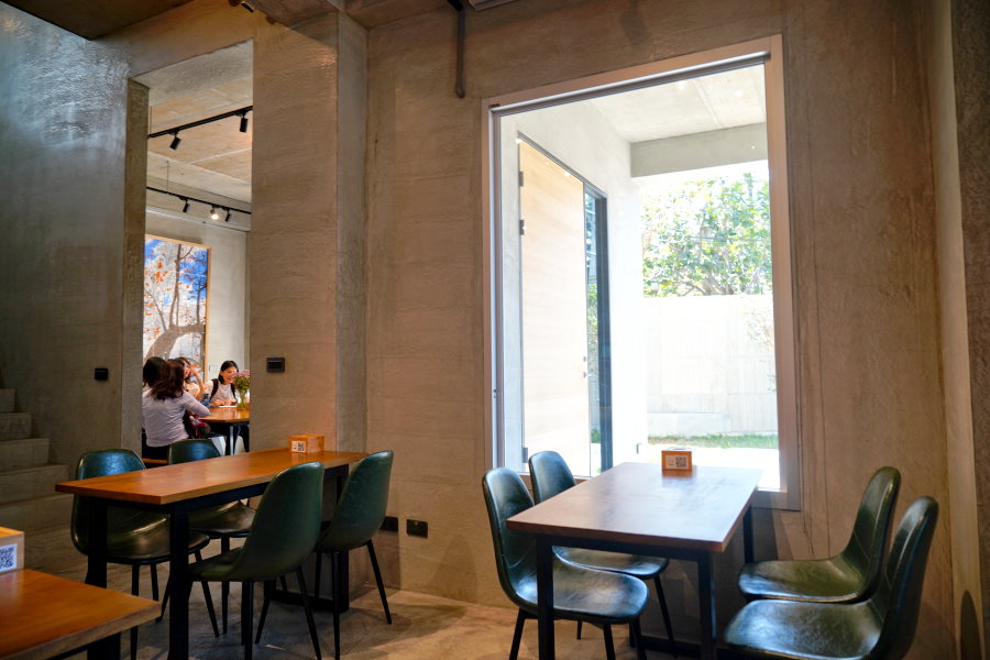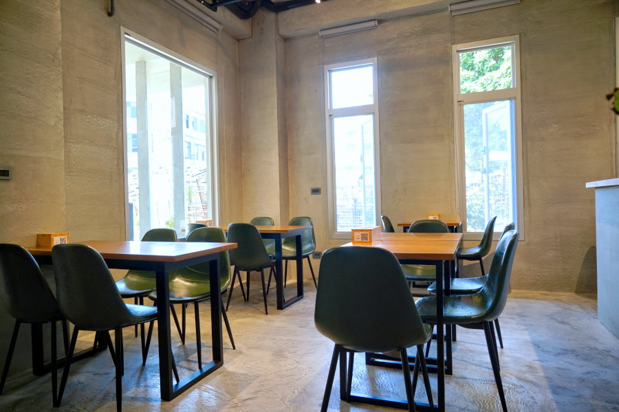 ▼另外一區大多是2~4人座位區,簡約的水泥牆面搭配灑落室內的陽光,採光特別好,獨到的光影變化也非常美!
