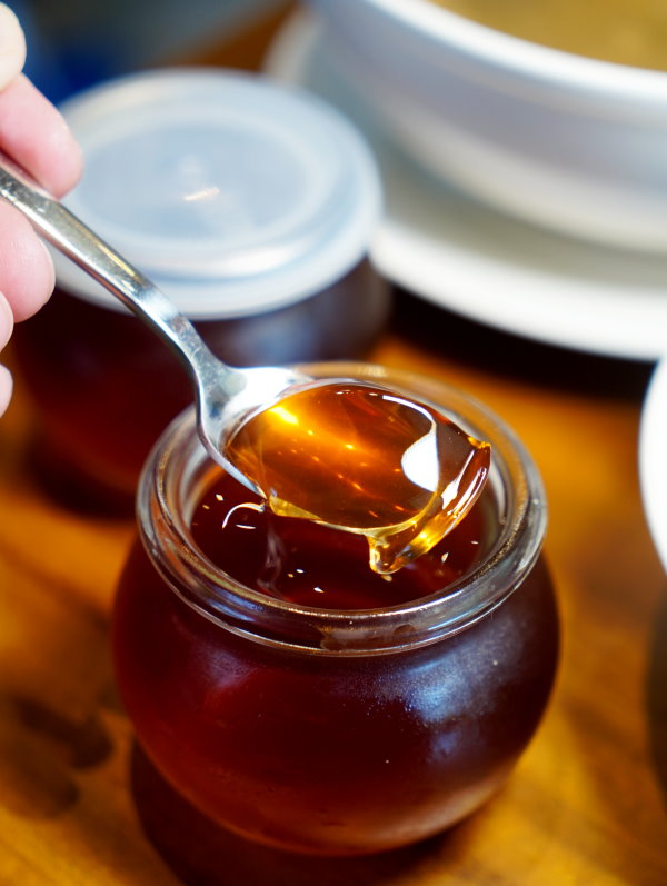 ▼膨風茶凍,同樣使用劉家龍茶園龍眼木炭焙膨風茶為基底下去製成,輔以微微甜度點綴,吃起來Q滑香嫩,還帶有清新的蜜香,飯後來上一杯剛剛好,是個完美的Ending!