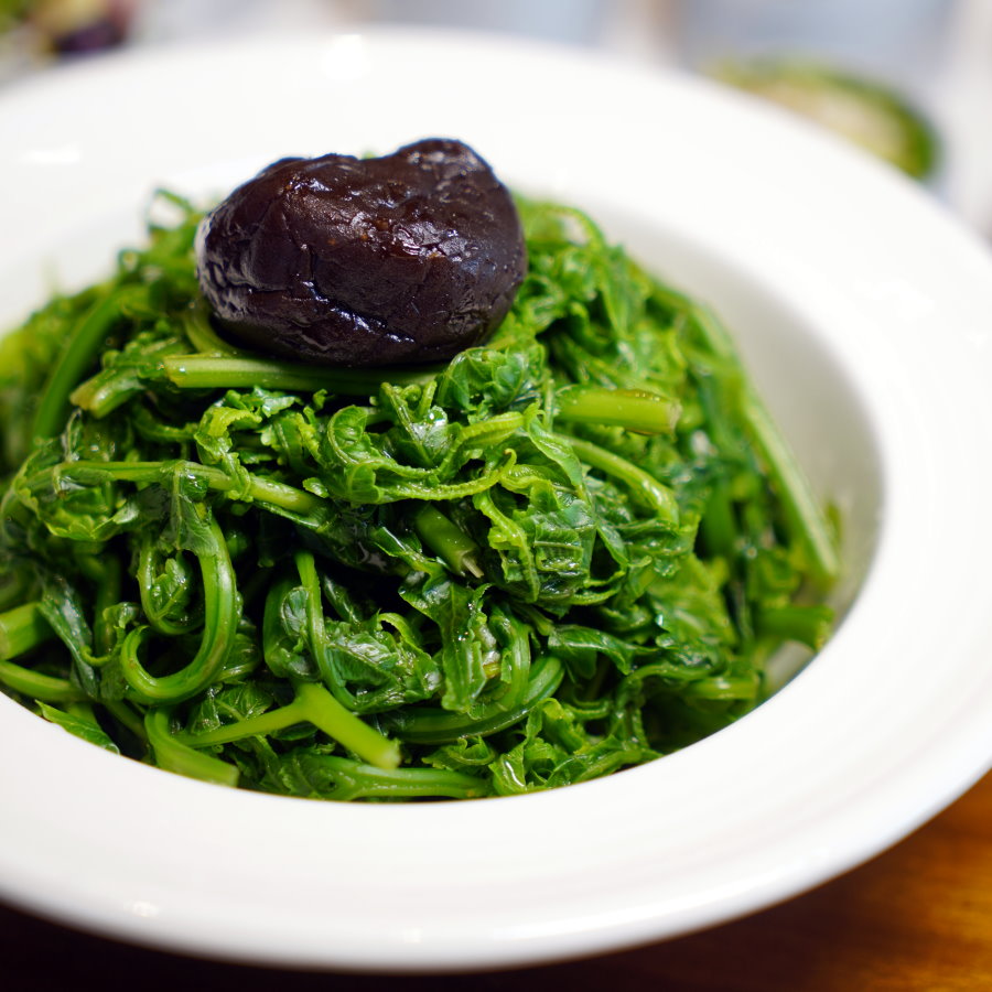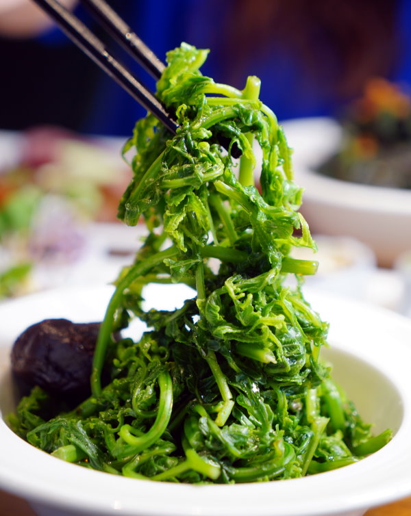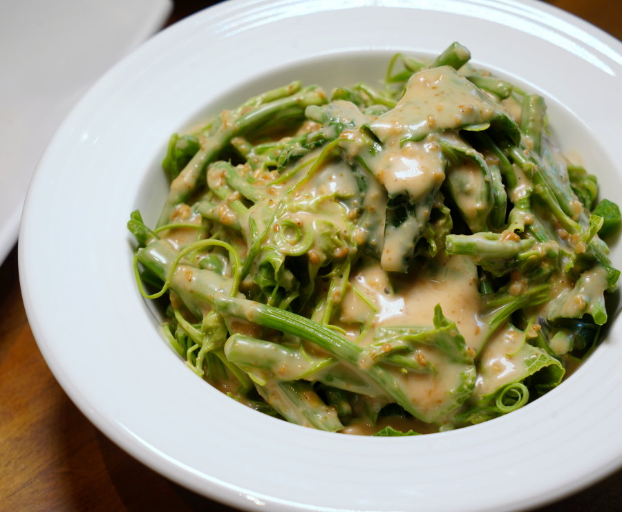 ▼涼拌西洋瓜心,採用在地小農栽種龍鬚菜搭配胡麻醬,帶點胡麻、花生香氣,吃起來香滑嫩口!