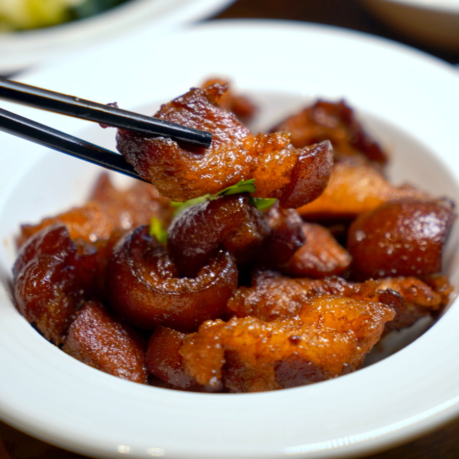 ▼鹹香甘甜的味蕾通通鎖進肉質裡頭,每一口都是夠味而不搶味,還是能吃到豬肉原有的香、軟、Q、彈,尤其外皮還帶點Q潤的咬勁,算是挺有層次的!