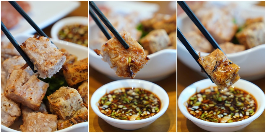 ▼客家鹹甜粄外皮帶點微酥,一口咬下,香菇、蝦米、豬肉香氣輪番上陣,搭配特調醬料更是多了一股鹹香甘甜的滋味,整個很涮嘴!檳榔芋粄,香脆的外皮搭配濃郁芋香,搭配醬料、甜鹹交錯的味蕾很誘人,就算已飽足還是讓人一口接一口停不下來!