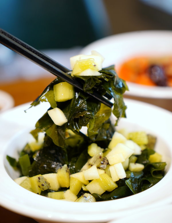 ▼海帶芽吃起來爽脆中帶點Q滑,搭配微微辛香、酸甜與果香交錯其中,吃起來清爽又無負擔!