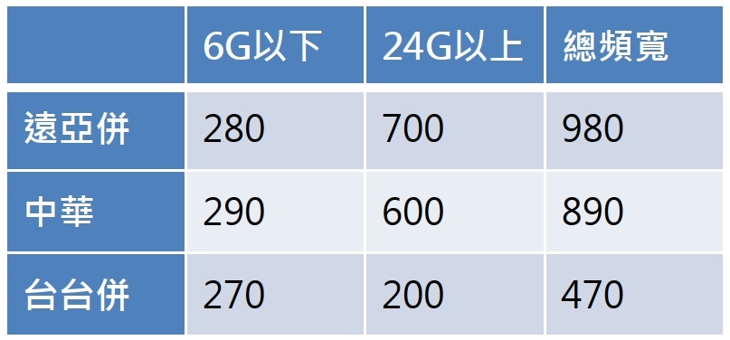 雖然新聞上說,遠傳需要歸還28G 100MHz的頻譜,不過因為原本所持有的就比別人多,相對的其它電信也須歸還700或900 10MHz,影響的部分不小,來看一下圖表,台台併總頻寬為470,中華總頻寬為890,遠亞併總頻寬則為980,贏了不少呀!未來重回電信三雄局面,當然是選擇加量不加價,4G/5G 更快收訊更遠,頻寬最大,CP值較高的遠傳。