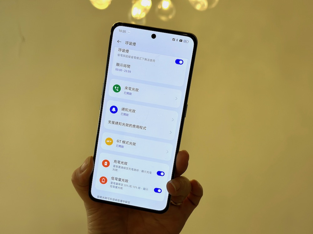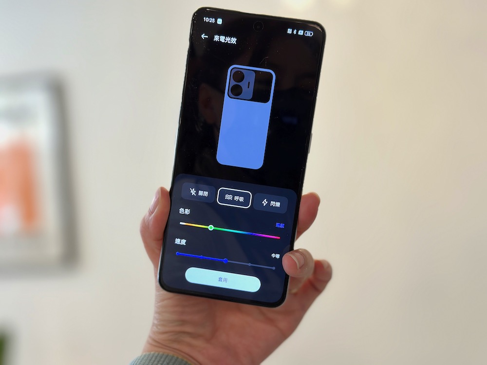 ▼ 在手機中有 25 種色調、2 種節奏類型和 5 種光速模式可以調整,讓手機有更有趣的個人化特色。