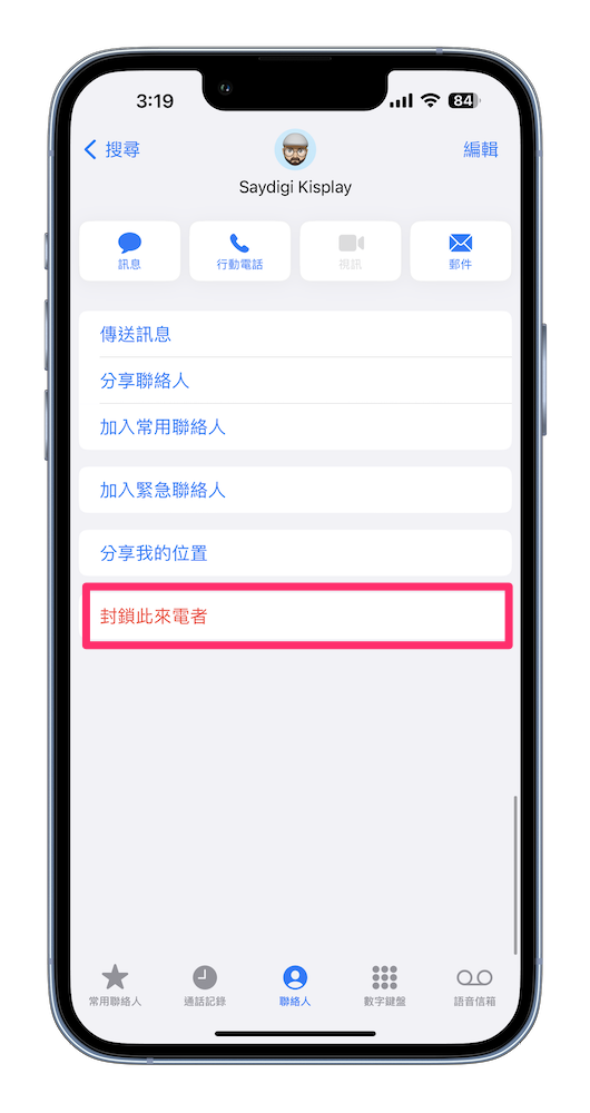 那麼如果想要「黑名單」的話也很簡單,一樣從剛剛的「電話」>>>「聯絡人」中找到想要黑名單的聯絡名片,點進去後拉到下方就有「封鎖聯絡人」的選項,點下去就完成了!