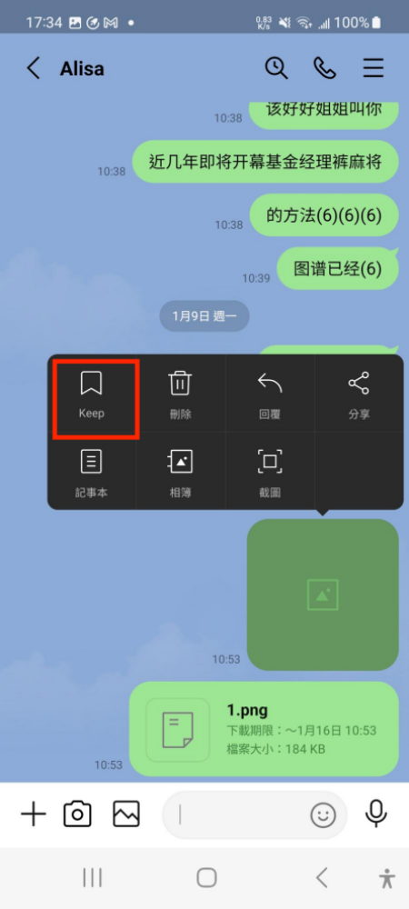 - 步驟 1:長按過期的 LINE 檔案,然後點擊「Keep」按鈕。