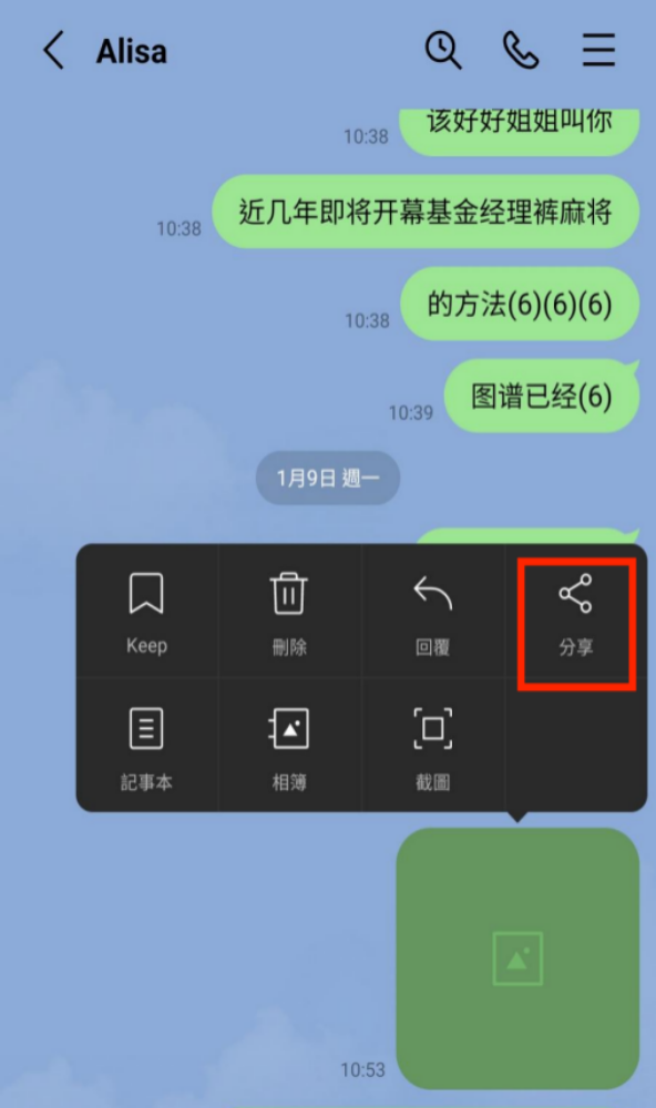 - 步驟 1:長按過期的 LINE 檔案,然後點擊「分享」按鈕。