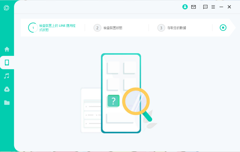 - 步驟 2:軟體會自動檢查裝置上的 LINE 狀態與裝置狀態,檢查沒問題後即開始存取數據。