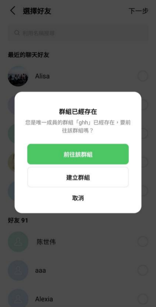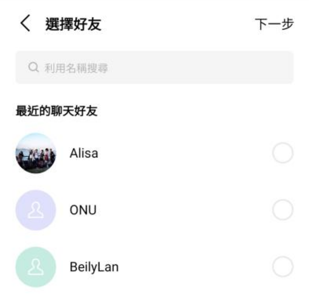 - 步驟 2:接著,無須點選任何一位好友,而是直接點擊由上角的「下一步」以跳過。