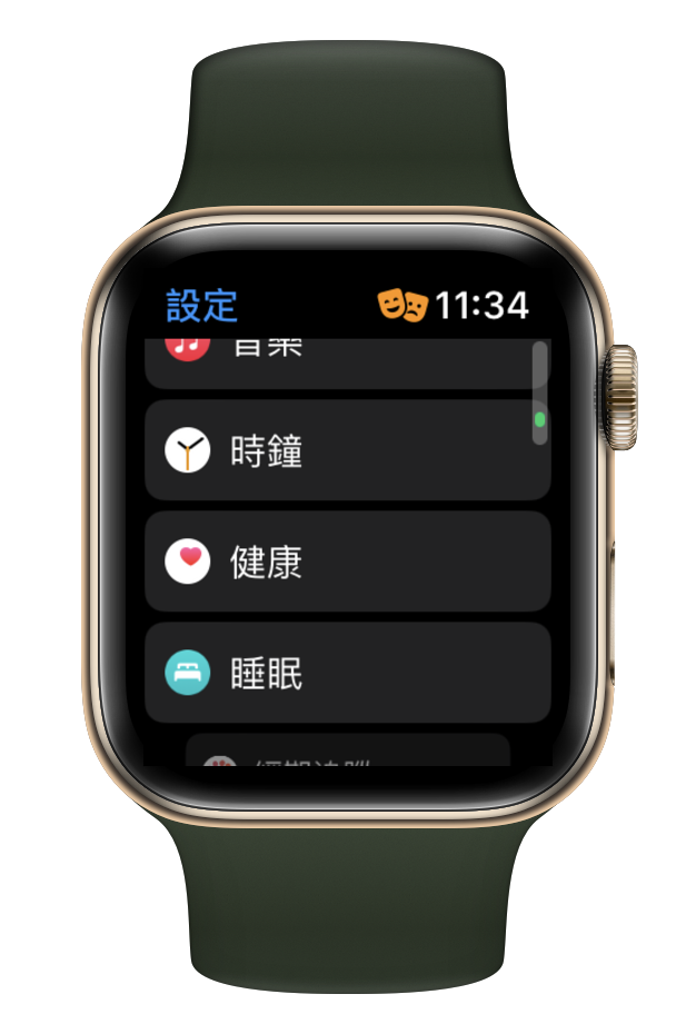 步驟 1. 打開 Apple Watch 的「設定」,後找到「時鐘」。
