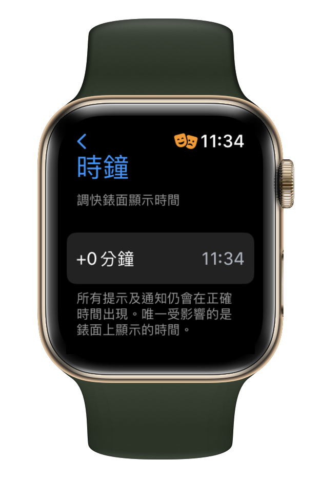 不過要注意也可以說放心的是,這邊調整的「只有錶面顯示的時間」,所以如果有設定鬧鐘、提醒等,還是會在正確的時間發出通知提醒。