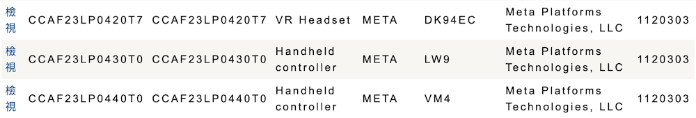▼ Meta Quest Pro 通過 NCC 審核名單