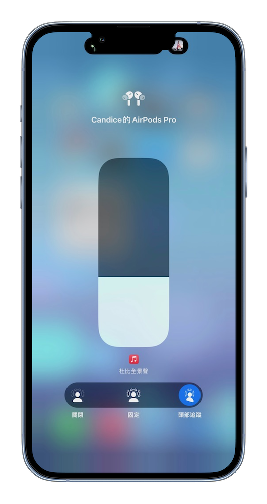 如果想要更改頭部追蹤的話,也能在控制中心裡長按 AirPods 控制列後切換選擇。