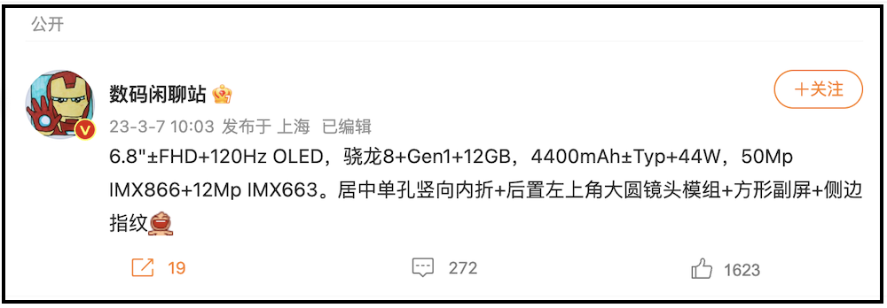 繼三星的 Galaxy Z Flip 4、OPPO Find N2 Flip 後,vivo 也準備要推出小尺寸的摺機機? 稍早微博上就有爆料者釋出 vivo 小尺寸摺疊機的規格消息,傳聞也預告會在 4 月發表!
