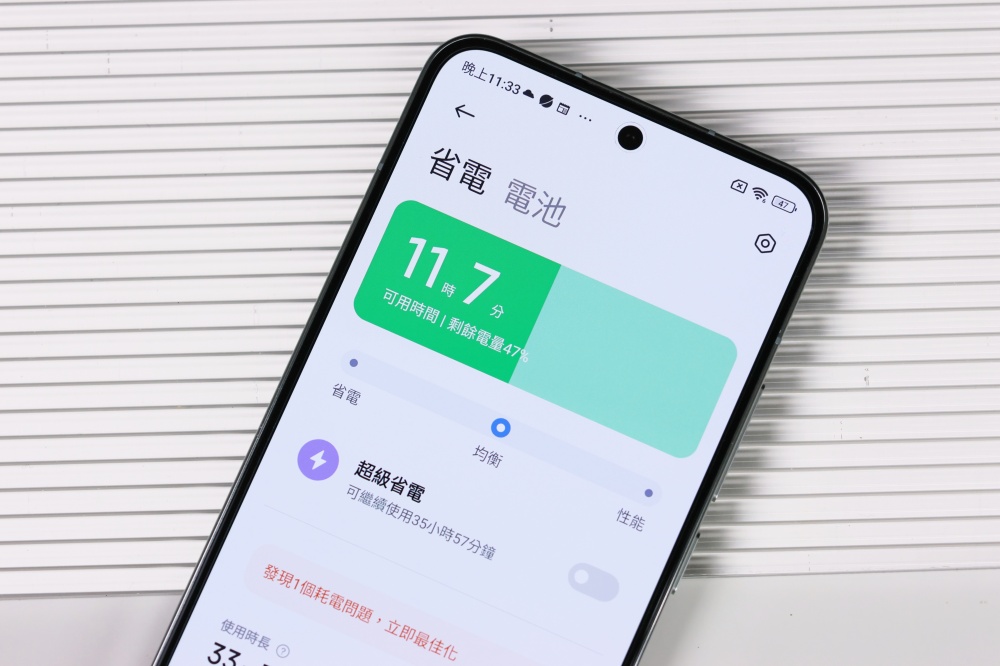 電池和快充技術是小米這幾年發展飛快的重點,Xiaomi 13 採用 4,500mAh 大電池,透過 PCMark 工作 3.0 來測試一般使用情境下的表現,在螢幕更新率設定為 120Hz 高更新率時,電池電量從 100% 至 20% 為 14 小時 56 分,這表現足以應付一天外出時間使用,以小螢幕的旗艦機來說續航力非常優異。