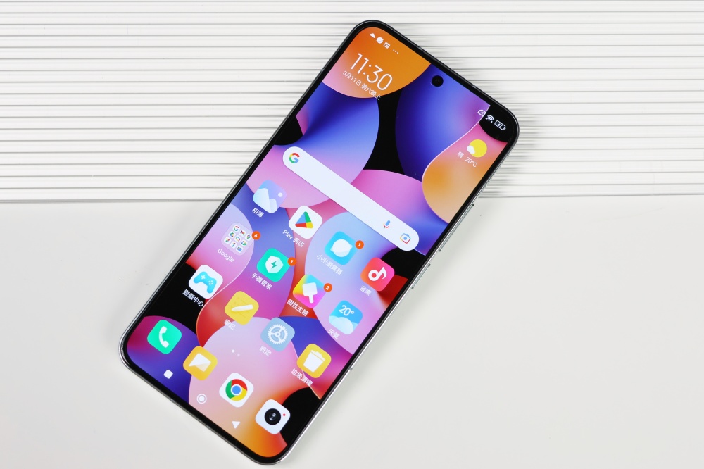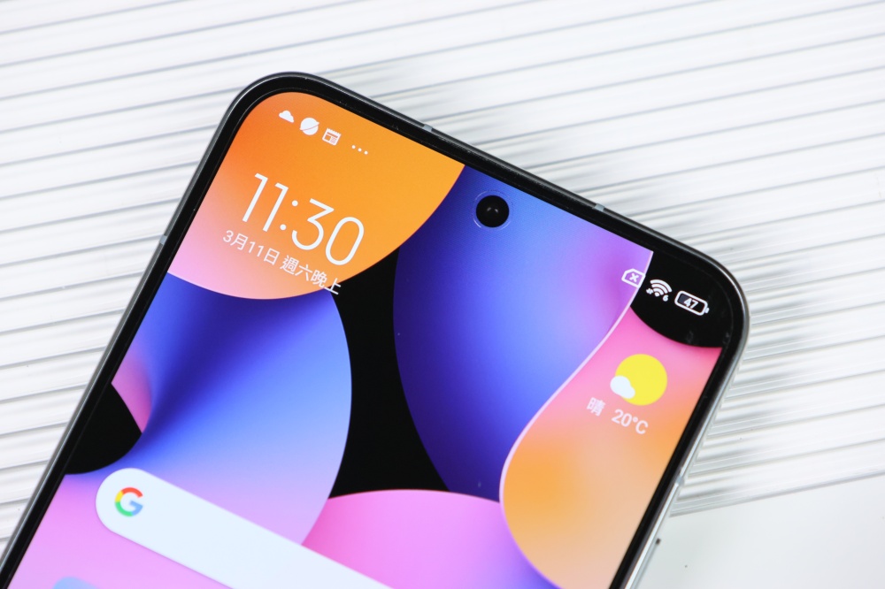 螢幕邊框只有 1.61mm 極窄,讓螢幕的視覺效果有更放大的感覺,加上四邊窄度幾乎相同的邊框設計,細節更為加分。導角圓弧做得恰到好處,拋開先前為人詬病的不等邊廉價感,螢幕使用康寧大猩猩第五代玻璃,此螢幕真的是這波旗艦機中的大亮點。