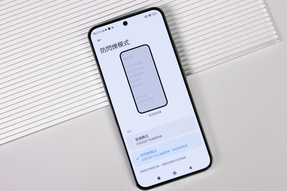 另外,有些人可能會在比較暗的環境下使用手機,這時如果螢幕出現閃爍的情況可能會造成眼睛疲勞,因此內建防閃爍模式,可以降低這類視覺疲勞狀況。