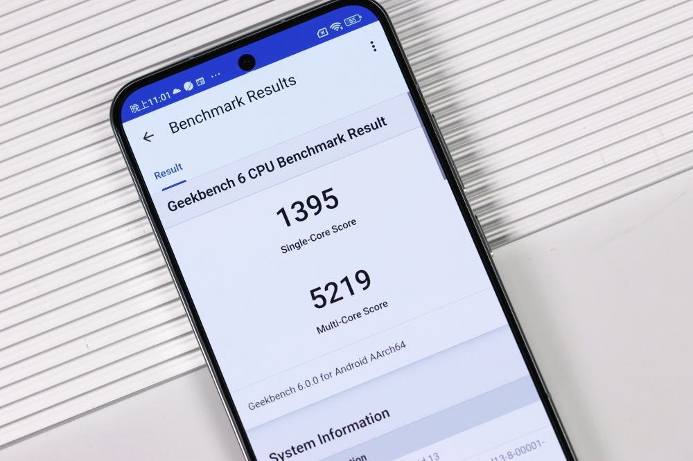 Geekbench 6 單核分數為 1395 分、多核為 5219 分。