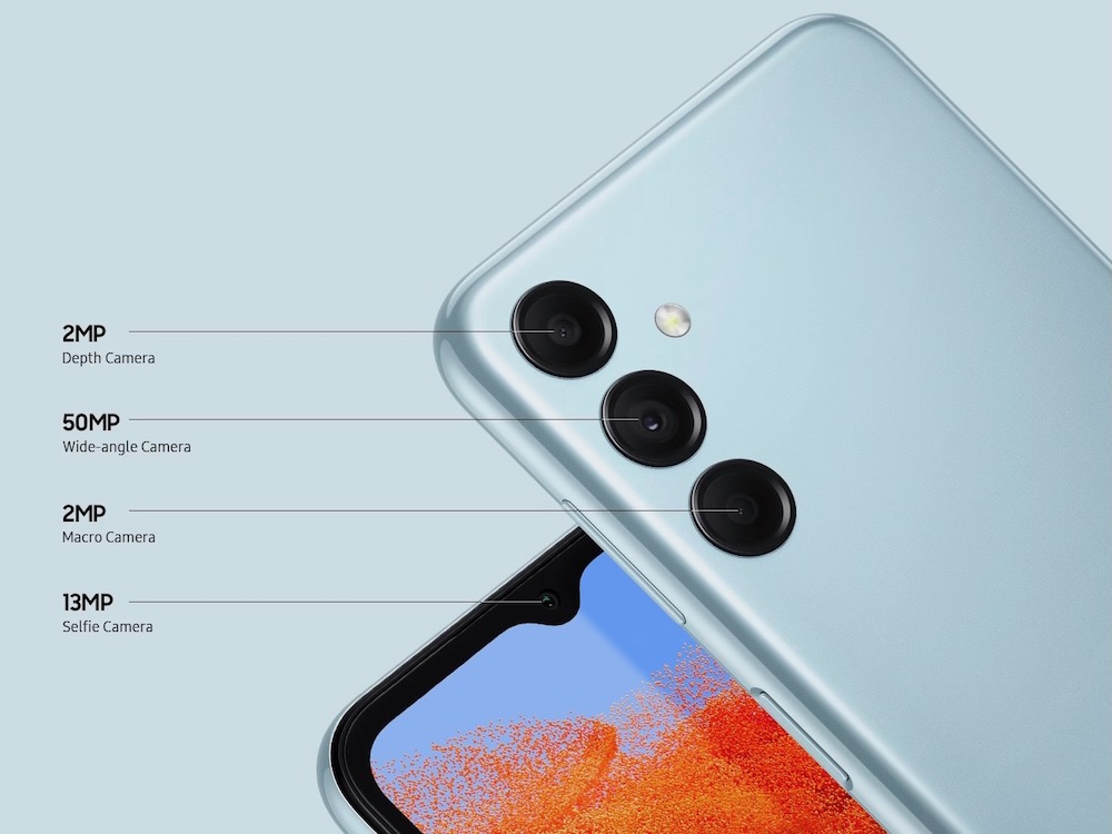 Galaxy M14 5G 搭載了 Exynos 1330 處理器,有 4GB 與 6GB RAM 2 種記憶體與 64GB / 128GB 2 種容量選擇,能用 micro SD 卡擴充至 1TB。相機方面除了 5000 萬畫素主鏡頭還有 200 萬畫素景深鏡頭與 200 萬畫素微距鏡頭,前置鏡頭部分是 1300 萬畫素。電量方面有著 6000mAh 電池容量,支援 25W 快速充電,還有雙 SIM 卡、5G、WiFi。