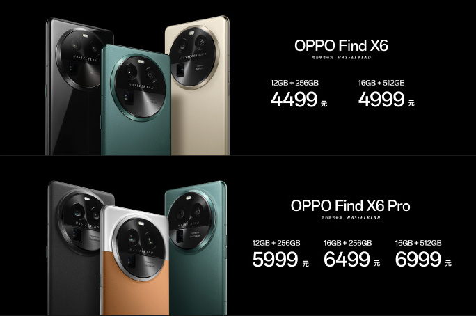 售價方面 Find X6 Pro 有 12GB+256GB 人民幣 5,999 元(約 NT$26,700 元)、16GB+256GB 人民幣 6,499 元(約 NT$28,900 元)、16GB+512GB 人民幣 6,999 元(約 NT$31,000 元) 3 種容量組合,雲墨黑、飛泉綠與皮革質感的大漠銀月 3 色。