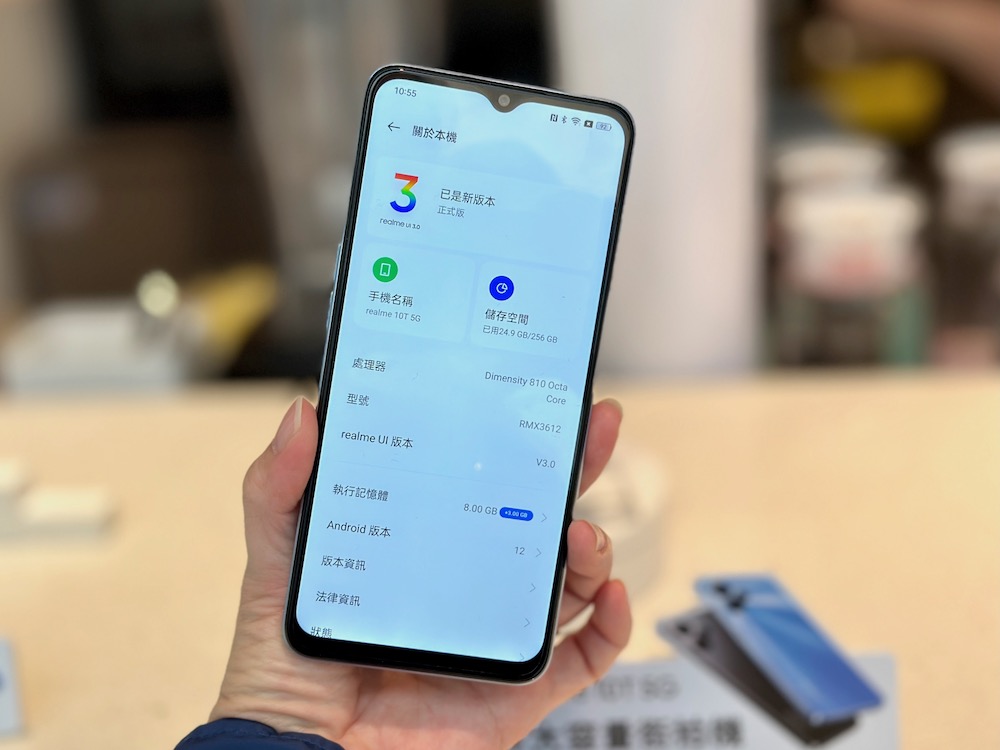 不只有別出心裁的背蓋設計,realme 10T 5G採用了目前市面上主流的2D邊框設計,平滑的一體式背蓋保持了手機的整體性,機身僅有 8.1mm 的厚度與 187g 的重量配置,打造超薄、超輕巧、超滑順的舒適手感。