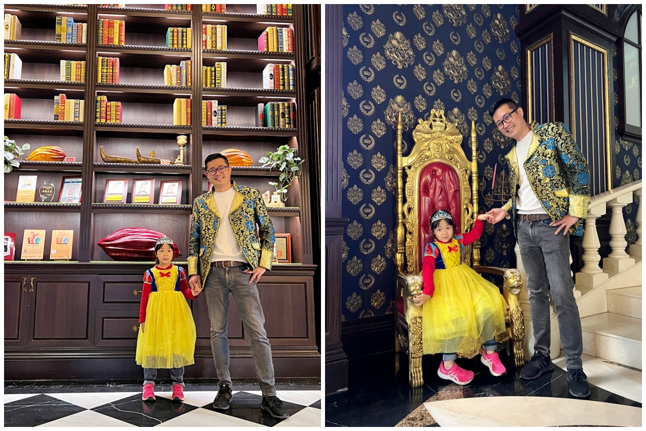 ▲一樓室內的浮誇裝潢就可以拍很多張,友人的女兒跟漢斯先生組合也好可愛。