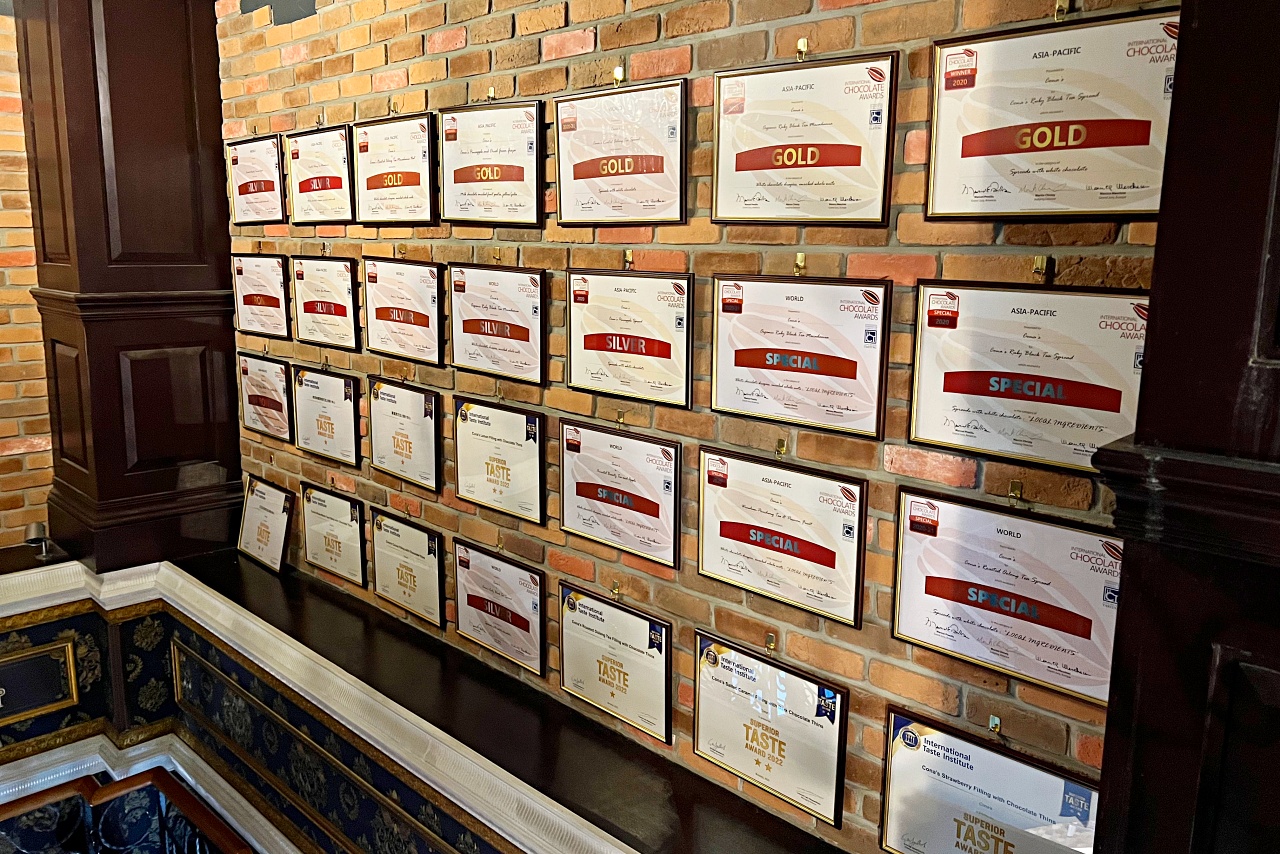 ▲前往二樓的旋轉樓梯旁可以看見各種國際獎狀,滿滿的整面牆就知道足以稱得上是台灣之光!