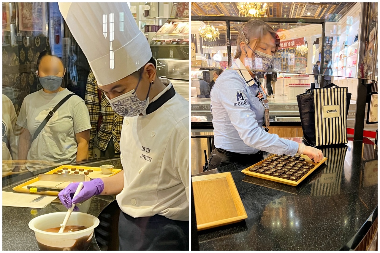 最特別的是還有專業巧克力師父的精彩巧克力秀,平日是兩場11:00、15:00,假日則是三場11:00、13:00、15:00,很推薦大家來到這裡就別錯過囉!可以現場看到高品質巧克力的大理石調溫法,加上專業導覽人員解說,原來好的巧克力除了嚴選原物料以外,還要有專業巧克力師父的技能,才能造就一顆顆高品質又滑順的調溫巧克力。現場會發送每人一顆的免費調溫巧克力讓大家品嘗。