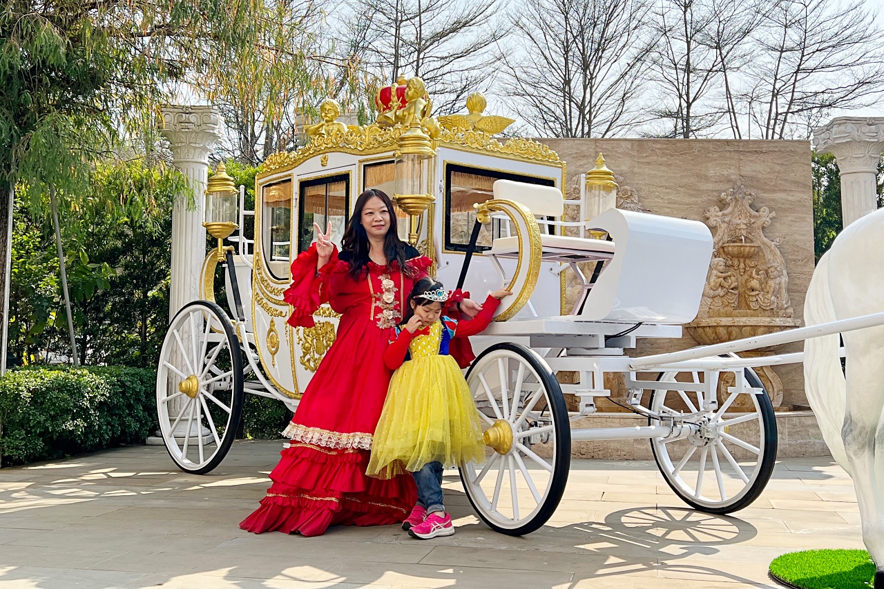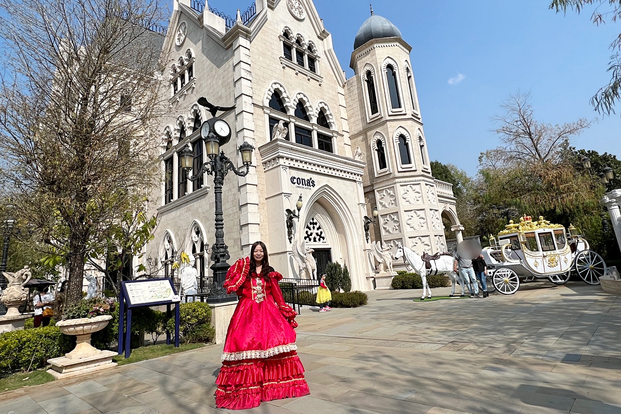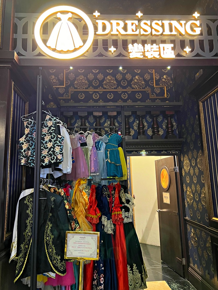 最特別的是城堡裡面設置變裝區,提供華麗的宮廷服裝(大人小孩都有)、皇冠、帽子、魔法棒等等,讓客人免費穿上在園區內拍照。這裡也是很熱門的,許多情侶會特地換上服裝拍下夢幻美照。